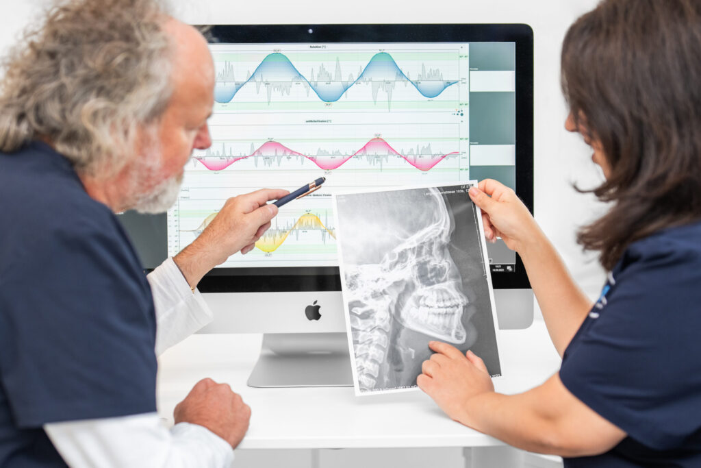 Gemeinsam mit dem interdisziplinären Zentrum AK-Med haben wir die PodoDentologie entwickelt – ein Konzept, das den Zusammenhang zwischen Füße, Wirbelsäule, Kiefer und Zähne untersucht. Eine Fehlstellung der Füße kann die Wirbelsäule beeinflussen, ebenso wie eine Zahnfehlstellung. In der PodoDentologie analysieren und behandeln wir diese Wechselwirkungen im interdisziplinären Team.