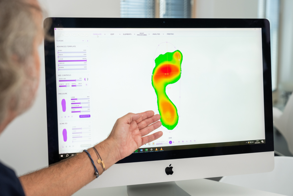 Da kein Fuß dem anderen gleicht, wird jede Einlage individuell digital konstruiert. Mithilfe moderner CAD-Technologie können selbst unterschiedliche Härtegrade umgesetzt werden. Dadurch ermöglichen wir eine millimetergenaue Anpassung an den Fuß.